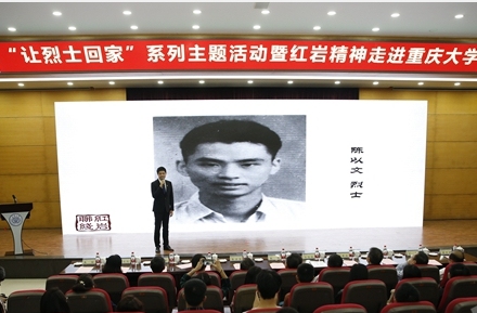 华龙网-新重庆客户端10月9日16时讯(首席记者 佘振芳 见习记者 姜音子)有这样一位烈士,他本是一名文弱书生,却被敌人称为共产党里的神行太保,同时也在重庆大学留下过光辉的战斗足迹,他就是陈以文。今(9)日下午,在“让烈士回家”系列主题活动暨红岩精神走进重庆大学红岩英烈故事会上,红岩烈士陈以文的故事打动了无数重庆大学的学子。