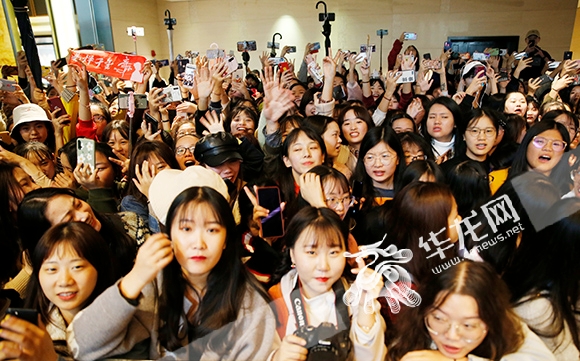 在发布会前一小时,华龙网-新重庆客户端记者就看到,不少粉丝将发布会酒店外围团团围住,尽管主角还未现身,现场的尖叫声却是此起彼伏。