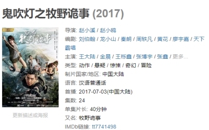 截至11月7日,《鬼吹灯之牧野诡事》在豆瓣上评分仅为3.0分