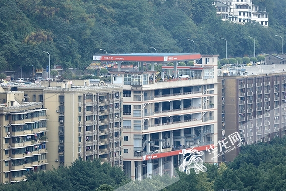 六楼楼顶的加油站,位于南区路上。华龙网-新重庆客户端记者 谢鹏 摄