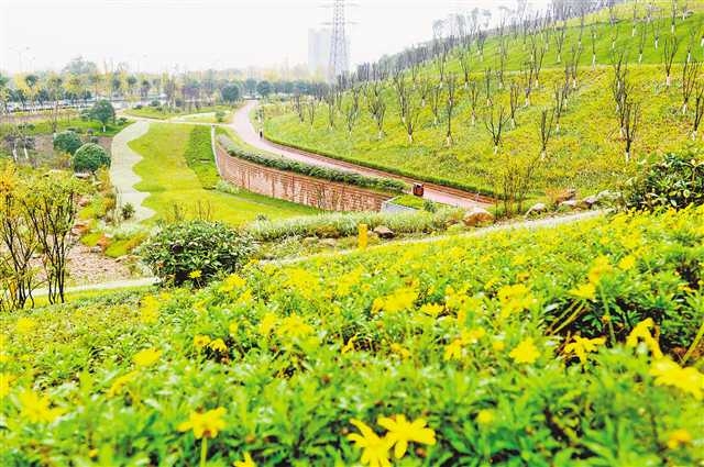 11月26日,两江新区黄桷片区的湖映坡地公园,根据坡度不同栽种上了波斯菊、染井吉野樱等。记者 张锦辉 摄