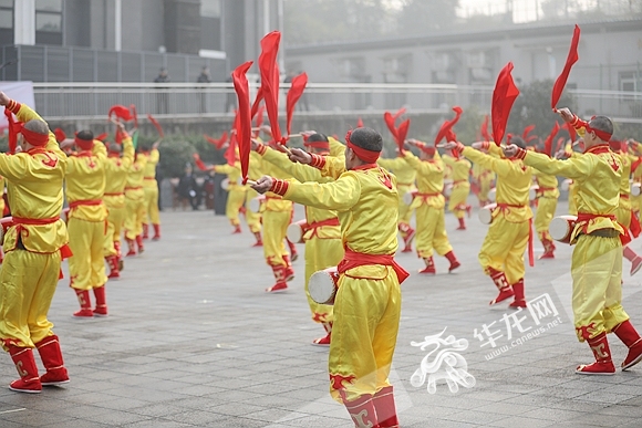戒毒学员的腰鼓表演。华龙网-新重庆客户端记者 李裕锟 摄