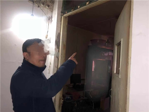 犯罪嫌疑人指认作案用的主机。沙坪坝警方供图