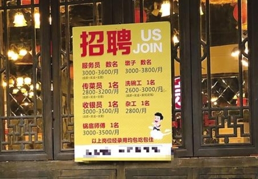 “招聘服务员数名”、“包吃包住,等待你的加入”……近日,记者在石油路的一条餐饮街上看到,一半以上的餐饮店都贴上了招聘启事,每个餐馆所招聘的岗位中都有服务员。不仅是这条餐饮街,很多重庆餐馆老板都反映,近年来不仅“人难招”,而且“人难留”。 现象 餐饮一条街都在招服务员 石油路餐饮一条街是连接大坪正街和经纬大道的一条支路,一条街不到500米,两边聚集了30多家餐饮店,包括火锅、汤锅、江湖菜和家常饭馆等。11月14日,记者在这条餐饮街上看到,紧靠嘉华鑫城小区这边的餐馆,至少有10家餐馆在门口贴出了招聘启事。在这些餐馆所招聘的岗位中,大多包括服务员、传菜员、墩子、洗碗工等工种。 记者注意到,在所招聘的工种中,对服务员是需求最多的。比如,一家餐馆贴出的招聘中,总共要招22人,其中要招的服务员就占了8人。“已经贴了有段时间了,我们几乎长期都在招。”该餐馆负责人透露,马上春节了,走的人更多。她谈到,店里八成以上的服务员,年龄都在40岁以上,最年轻的服务员20多岁,只有1个,“年轻人不愿意干。” 从待遇上看,在招聘中直接写出待遇的几乎都是3000元/月左右,最高每月不超过4000元,包括底薪+奖金+全勤。 困扰 不仅招不到而且留不住 不仅是石油路餐饮街,记者采访时了解到,餐饮行业缺服务员,流失率大,似乎已经成了行业共识。 徐先生在渝北区经营着一家150平米的快餐店,“最近两年感觉特别明显,服务员很难招回来。”他店里前厅加后厨大概需要15个人左右,找中介、劳动力市场转悠……“能带回来的人很少。”他称,自己每个月给服务员的工资是3000元,过年过节还给大家发点红包。 “从我2013年开始创业做餐饮到现在,一直跟着我还在店里干服务员的只有1个人。”在徐先生看来,40岁以上相对干得长一点,年龄越小,跑得越快,“本来就不好招人,竞争还很激烈。前两个月店里招了一个服务员,给她的工资是3000元,干了1个月就去隔壁茶楼了,工资听说还涨了500元。” 招不到,留不住,和徐先生有相同困扰的还有冯静。冯静和老公在沙坪坝经营着一家火锅馆,生意不错,“我们这种夫妻店,更不好招人。”她称,店里员工流动性很大,干不了几天就走人,“当然,工作强度大也是事实,确实很辛苦,像我们店经常要营业到凌晨1点以后,每个月还只能休息两天。” 数据 紧缺职业排行服务员排前三 近日,中国就业培训技术指导中心发布102个定点监测城市公共就业服务机构人力资源市场《2019年第三季度全国招聘求职100个短缺职业排行》。根据排行,营销员、收银员、餐厅服务员、保安员、保洁员、商品营业员、家政服务员、车工、焊工、装卸搬运工排名前十。 值得注意的是,本次排行100个职业中,42个属于社会生产服务和生活服务人员,36个属于生产制造及有关人员。也就是说,在服务业对经济发展影响力日益凸显的当下,相关的从业人员还存在大量缺口。 “餐饮小店更加难招人一点。”重庆一家网络招聘公司负责人杨先生告诉记者,他们也经常服务餐饮企业,确实服务员的需求量比较大。在他看来,一些品牌连锁餐饮招人相对容易很多,一些夫妻店或者单店面临的最常见问题,不是留不住人,而是找不到人,“这一行的确比较辛苦,除了薪资 待遇问题,对年轻人来说,也没有清晰的晋升和发展空间。” 记者在采访时了解到,随着其他服务业的兴起,如快递、外卖、KTV、理发美容机构等,也创造了更多就业的机会。“对年轻人来说,他们的就业选择机会更多了;对年龄大一点的人来说,大多家里也不差这点钱。”一家餐馆老板直言,对于他们这种单店经营的来说,又必须控制成本,就只能在招不到人→缺人→工作强度大→留不住人→缺人中不断循环。 此外,从服务业的发展来看,新职业名单范围不断扩大,生活服务业成新职业摇篮;同时生活服务领域的新职业也已成为就业蓄水池,新职业被从业者认为“行业发展快、前景好”。根据美团点评联合21世纪经济研究院、智联招聘共同发布的《2019年生活服务业新职业人群报告》显示,55%的新职业者月收入超过5000元,其中月薪过万元的有24.6%、月薪2.5万元以上的“高薪人才”也有5.64%。 声音 考虑新生代劳动力的职业诉求 “众所周知,服务员的工作,待遇不算高,同时又辛苦。”中国社会科学院人口与劳动经济研究所社会保障研究室主任陈秋霖在接受重庆商报-上游新闻记者采访时认为,之所以这类工种相对难招,主要还是需要从两方面来看,一是总量性的,还有就是结构性的。陈秋霖谈到,总体上来说现在劳动力的增长不如之前那么多,特别是从农村转移出来的劳动力不如以前多了。从总量上来看,就造成了整个劳动力市场的一个现状:劳动密集型的服务行业,存在招人难,“可选择的类似工作种类多了,相对应的人少了,肯定就会挑工作。” 为什么大家愿意去做快递员,去当外卖员?在陈秋霖看来,一是收入问题,另一方面则是职业环境问题。从现状来看,服务员的待遇比较低,薪酬待遇缺乏竞争性,此外工作环境比较艰苦和枯燥,“新一代年轻人对工作的要求和以前的观念不同,他们在选择工作的时候不再仅仅考虑谋生,同时考虑职业环境、挑战性,以及对未来发展预期。” 不过,服务员依然是非常重要的工种和岗位,在社会服务业发展过程中离不开他们的身影,这也需要服务业吸纳就业的能力进一步加强。“