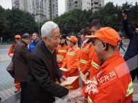 重庆市教育发展基金会执行理事长刘路明为环卫工人发放资助金 霍瑞新/摄