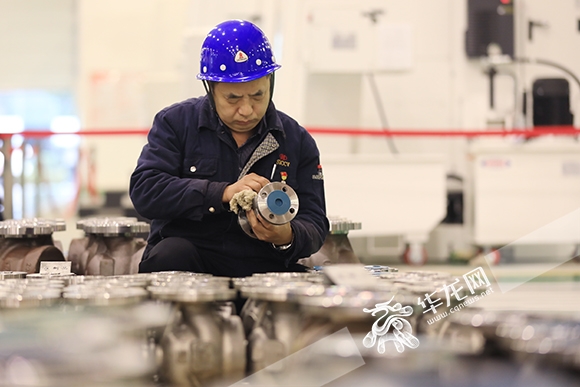 整洁干净的生产车间内,拿下眼镜擦了擦后,川仪调节阀有限公司首席技师刘平戴上眼镜便和眼前的阀体较真起来,从尺寸、粗糙度等方面仔细观察后,判定眼前的阀体合乎标准了他才慢慢放下。