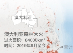 英国卫报1月6日报道,至少23人在澳大利亚林火中丧生,超过1700座房屋被毁,过火面积超过84000万平方公里,这一面积相当于70个纽约。而据早先纽约时报报道,2018年美国加州大火过火面积为7689平方公里,这已经是加州历史上最严重的大火。相比之下,澳大利亚的这场火规模要大得多,带来的后果可能也更严重。