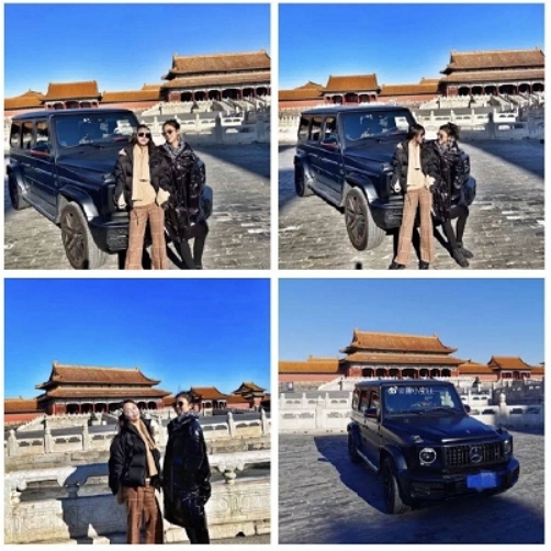 ▲1月17日,“@露小宝LL”在微博上晒出两名女子与黑色奔驰越野车照片,背景是故宫博物院太和门广场。