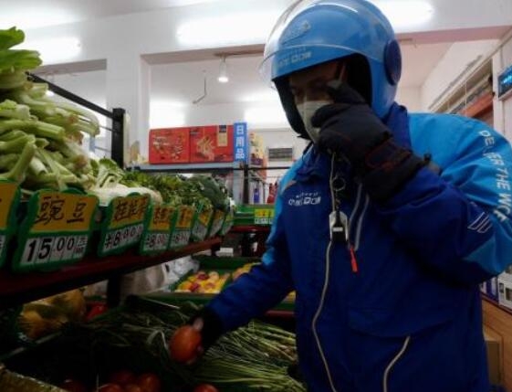 在超市、菜场里,都是由工作人员帮忙取菜配菜,骑手核实订单后直接拎袋、生熟分类打包走。在送达时,骑手会以“无接触配送”的形式,与顾客用电话或APP沟通后,将菜品放在其指定的门卫处或者其家门外。
