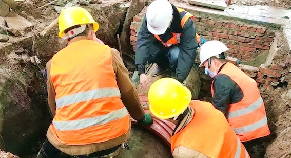 据了解,此次突发爆管系该处DN700管道套筒处破裂,抢修人员快速启动应急预案并制定了具体抢修方案,关闭阀门展开抢修施工作业。因在疫情防控期间,现场工作人员特别认真做好现场防护与自身保护,在寒风泥泞中连续苦战5个小时,顺利完成抢修。11时,该管道恢复通水,确保了相关区域市民用户正常用水。