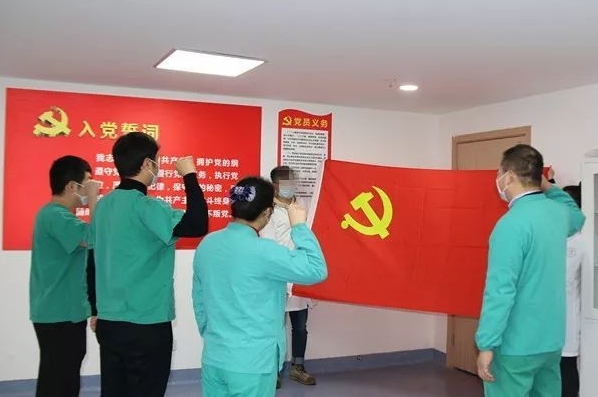 “我们定将以实际行动践行共产党员的铮铮誓言,履行医务人员的天职,以担当作为给党旗增辉添彩。”三人宣誓后说。