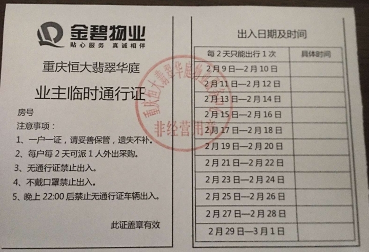 恒大翡翠华庭业主通行证