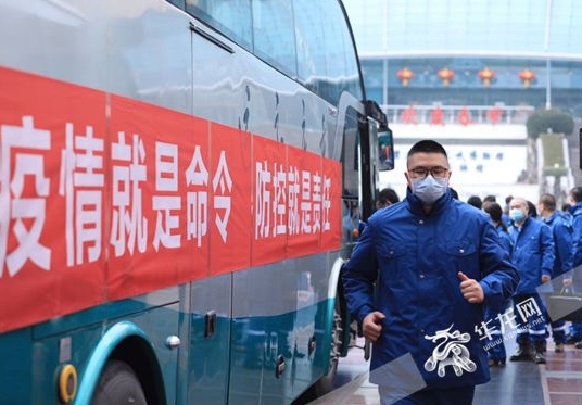 重庆市赴孝感市新冠肺炎防治工作对口支援队159人今日出征。华龙网-新重庆客户端记者 张质 谢鹏 摄