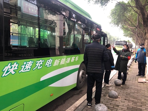 华龙网-新重庆客户端2月20日9时45分讯(记者 刘艳)“你好,请测下体温。”随着一辆188路公交进站,卢文刚快速下车,站到前门处,他是这辆车的随车测温员,每到一站,他都要为上车乘客先测量体温。