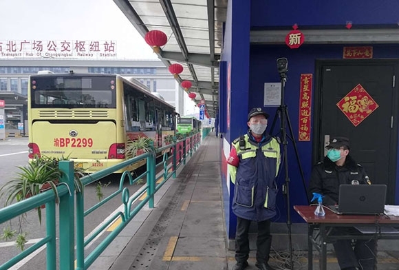 重庆北站北广场公交站场启用红外线体温自动检测仪。重庆巴驿站场公司供图 华龙网发
