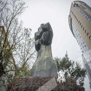 三三一惨案纪念碑的主体是一个握紧的拳头雕塑,它是七星岗的地标,也是不少重庆人童年的记忆。该雕塑1987年由四川美术学院设计,重庆造船厂制作,为纪念三三一惨案60周年而立。当天,周勇等一行人来到三三一惨案纪念碑前,献上94朵鲜花,向死难的烈士表达无限的哀思和敬意。