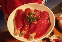 4、锅里留少许油,下三勺番茄酱,加入少许盐、红醋三勺、水豆粉少许,制成酱汁,淋在耗儿鱼上。