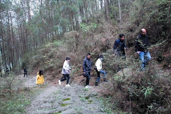 法缘寺位于仙女湖镇苦竹坪村与长岭村交界处,如今只残留了部分遗迹。跟随向导的指引,采访团一行踏着前人的脚印,穿过松林,一路攀爬,终于寻到了法缘寺遗址。隆永林认为,虽然没有完好留存,但法缘寺仍然是四川红军第二路游击队在丰都发展壮大的一个重要见证,四川红军第二路游击队收编了“神兵”队伍,规模扩大到了1000余人,为攻打栗子寨建立革命根据地奠定了基础。