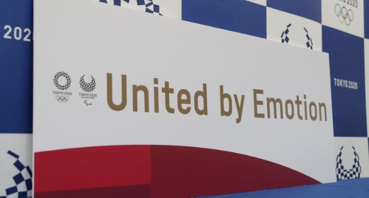 东京奥运会和残奥会口号“United by Emotion”。新华社记者 杜潇逸 摄
