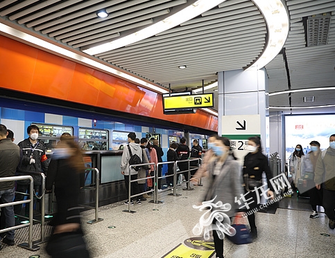 “目前随着企业陆续复工复产,牛角沱站的日均客流量也在明显上升,上周该站的日均客流量达3.2万人,而今天早晨的客流量又明显比上周增加。但因并没有达到相关数值,所以今天早上该站就没有采取限流措施。” 据重庆轨道集团网络运营中心运营三公司客服管理部中心站站长肖峡透露,乘客在进站后,工作人员会利用广播、显示屏等途径,通知乘客该车站是否正在进行限流措施。此外在工作日早晚高峰时段,还将根据车站客流、列车满载率等情况,将会对重点车站分级采取车站级管控、线路级管控、线网级管控等客流管控措施,有效应对疫情期间突发大客流情况。