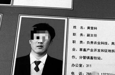 在吴起街道办公示栏,杨登科看到了黄登科副主任的工作牌,并得知黄登科负责街道办农业科技、高效农业、草畜产品开发和征地拆迁工作,分管镇畜牧站。