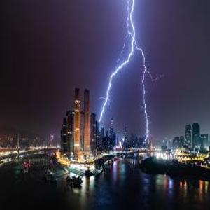 25日凌晨1点,闪电照亮重庆两江交汇的夜空。通讯员 刘靖霆 摄