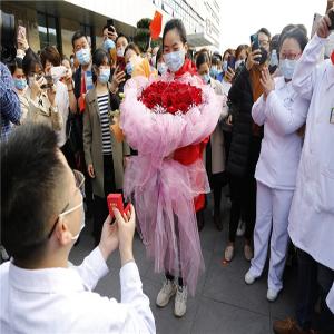 华龙网-新重庆客户端4月8日19时讯(记者 赵铁琥 特约通讯员 王彬彬 通讯员 徐太兴)4月6日,是重庆市云阳县支援湖北孝感市医疗队回家的日子,一幕大型现场求婚在云阳县人民医院上演,引发众市民围观,现场掌声不断,欢呼不止。温馨的求婚现场,不仅让男女主人公沉浸在幸福之中,也让在场见证者都感动得掉下眼泪。