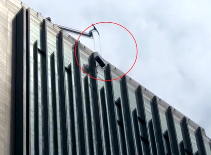 消防救援人员到达现场,发现新光天地中渝国际都会4-4写字楼顶部停着一高空作业设备,经过现场了解,两名工作人员利用室外擦窗机进行室外修补作业,不料作业中突遇擦窗机机械故障,导致擦窗机无法正常运行且不能上下升降,致使两名工作人员被困158米的高空,无奈之下向消防部门请求援助。
