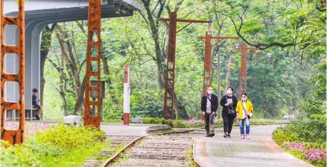 四月二十日,市民在位于四川外国语大学的小铁路步道休闲。老枕木、铁轨、站台……该步道修建于原重庆特殊钢厂废弃的专用铁路旁,从渣滓洞隧道到电台岚垭全长约三公里。目前,该步道改造工程主体已基本完工,正完善步道沿线绿化景观、导视系统及休闲座椅等设施,计划五月底投用。记者 张锦辉 摄