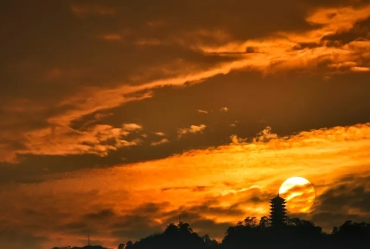 巴渝十二景之缙岭云霞。在清代诗人王尔鉴的《缙岭云霞》诗中,其序云:“缙云山九峰争秀,色赤如霞。”万难摄