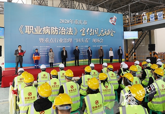 华龙网-新重庆客户端4月27日16时30分讯(首席记者 黄宇)本周是全国《职业病防治法》宣传周。今(27)日,重庆市第18个《职业病防治法》宣传周启动会暨重点行业治理“回头看”现场会在重庆华新地维水泥有限公司召开。本次活动由市卫生健康委、市民政局、市人力社保局、市医保局、市总工会联合举办。