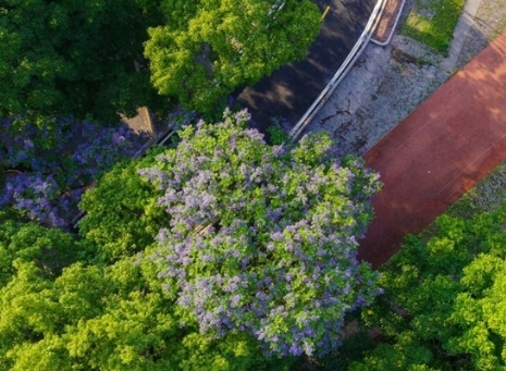 随后,记者联系上了杨坚老师,他是三位摄影老师之一,他从不同的角度拍摄了今年的蓝花楹。
