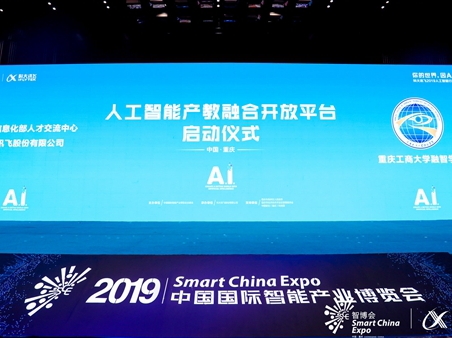 2019年智博会上,科大讯飞与川渝多家院校启动人工智能产教融合开放平台。科大讯飞供图 华龙网-新重庆客户端发