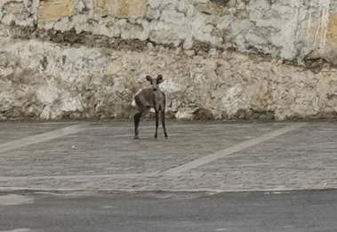 5月25日中午,一只青麂突然出现在巫山县神女景区北环线望霞游客接待中心,景区工作人员用手机记录了这精彩的一刻。在景区逗留了几分钟后,这只青麂返回森林。