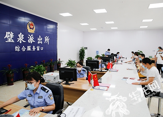 璧山区公安局相关负责人介绍,璧泉派出所根据当地务工人员较多的特点,还在综合服务窗口实现了临时身份证、边境通行证、户口准予迁入证、保安员证、户口簿补办、换领,新生儿入户,公民姓名及其它非主项目变更,购房迁入立户以及城镇地区直系亲属投靠等业务,可跨镇街实行全区通办。