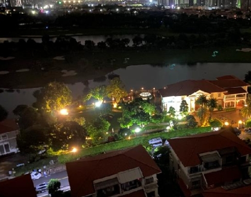 ▲6月14日晚,君兰国际高尔夫生活村事发住宅灯火通明,警车停靠在路边。航拍/受访者供图