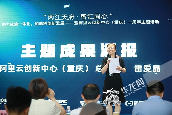 阿里云创新中心(重庆)总经理雷爱晶在活动现场作主题成果汇报。华龙网-新重庆客户端记者 李裕锟 摄