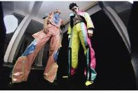 于是,她将街头常见的霓虹灯广告牌抽离出来,进行变形、扭曲和错位,在服装上进行重组,模糊现实与虚拟的界线。同时,把树脂覆盖在海报纸上,增加材质的光泽感,再镶嵌软灯条,营造出霓虹灯的气氛,并强调服装结构的空间感和层次感,生动地通过服饰体现出魔幻之未来。