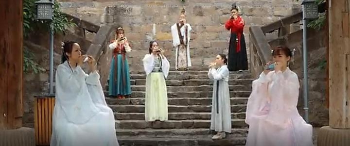 据悉,新冠肺炎疫情发生后,7名宅在家里的音乐教师参加了"洪啸园丁计划"(是由我国著名音乐家,华中师范大学赵洪啸老师发起的一项面向全国音乐老师的公益培训活动)初级班40多天的线上陶笛学习,学成后,线下他们相约相聚在古镇,共同演绎自编自导自演的音乐作品。