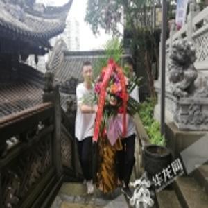 “小岳飞”在关岳庙敬献花篮。华龙网-新重庆客户端记者 袁舒含 摄