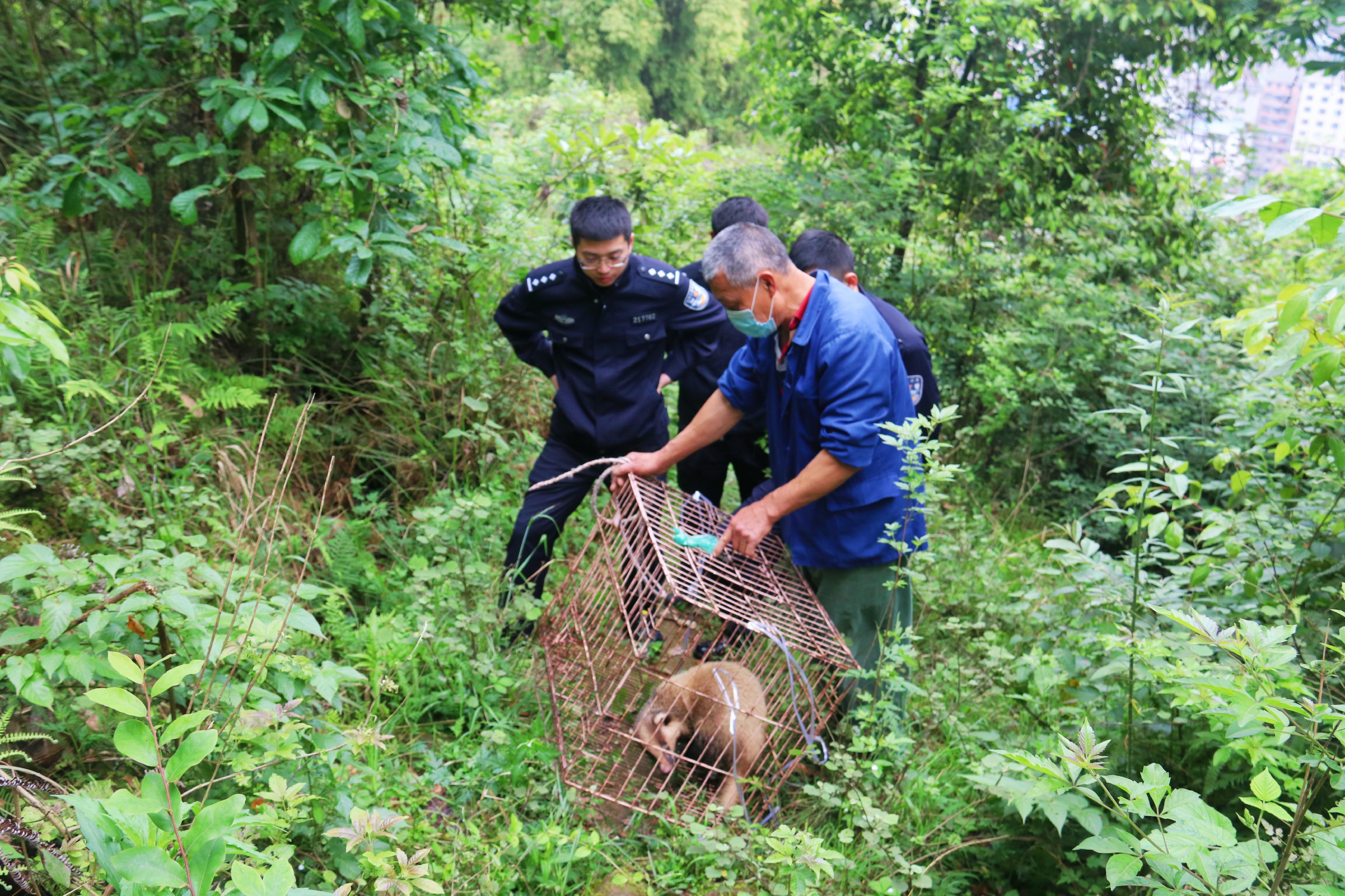 4月19日,忠县公安局白公派出所民警在白公街道长河社区龙船石(小地名)放生一只獾猪。