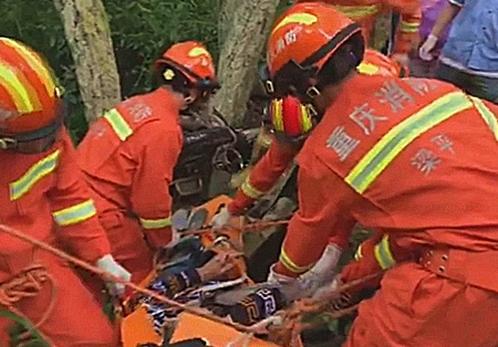 华龙网-新重庆客户端7月21日16时讯(记者 张勇)7月17日15时56分,重庆市梁平区消防指挥中心接到报警称,在梁平区蟠龙镇往福禄方向的318国道新店子路段,一男子骑摩托车侧翻到公路护栏外的陡坎下,情况紧急。接到报警后,当地消防迅速派人前往救援。