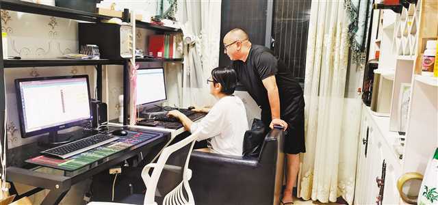 熊波和妻子在家里监测后台数据,处理异常订单。(受访者供图)
