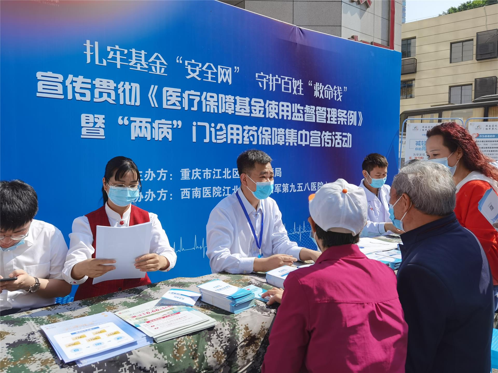 4月29日,江北区医保局在陆军军医大学西南医院江北院区开展《医疗保障基金使用监督管理条例》宣传活动。