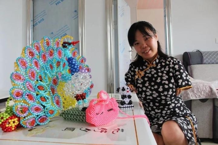 为难之际,市、县残疾人联合会伸出了援助之手,帮她解决了串珠工艺品的销售难题。