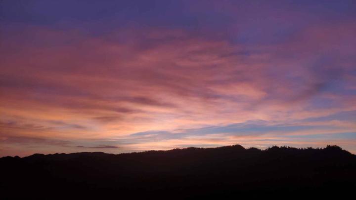 在晨曦中,朵朵祥云色彩缤纷、美轮美奂。一会儿红彤彤的,一会儿金灿灿的,一会儿粉嫩嫩的,一会儿白亮亮的......
