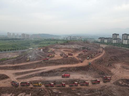 为顺利推进土石方平场,施工方在高峰期投入50余台挖掘机、推土机,200辆渣土车,24小时满负荷施工,经过50余天施工,龙兴专业足球场项目已完成土石方大平场工作,处理土石方总量180万立方米。