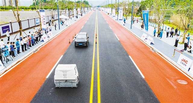 九月十三日,两江新区白云湖公园,ADAS辅助驾驶挑战赛现场,参赛车辆正在进行AEB自动紧急制动项目比赛。记者 齐岚森 摄视觉重庆