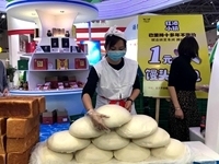 该车间2018年底开始从生产面条、豆干等单一品类产品向多产品类发展,展台的特大馒头,就是车间的产品之一。截至目前,就业扶贫生产车间各类生产机器设备达120多台,生产旅游食品近百种,树立了良好的口碑和独特的品牌效应。