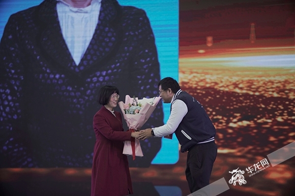 校友代表为教师代表献花。 华龙网-新重庆客户端记者 王珏 摄